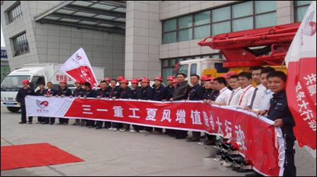 面对十二五开局之年各地如火如荼的基础设施建设,混凝土机械行业在迎来高速发展机遇的同时,也对服务质量提出了更高的要求,如何确保设备正常运转、提升施工效率已成为客户最为关注的问题。此次夏风增值服务行动是三一重工从客户深层次需求出发,在施工旺季到来之际全力助推客户设备施工效率、保障四大区域基础工程建设的大规模行动,它将全面检验三一泵送服务协同作战的服务战力,从而更好推动客户满意度提升,将“一切为了客户,创造客户价值”的服务理念践行到最大化。