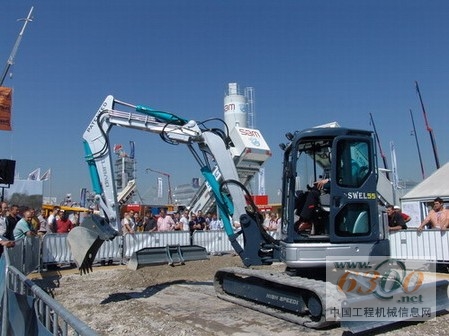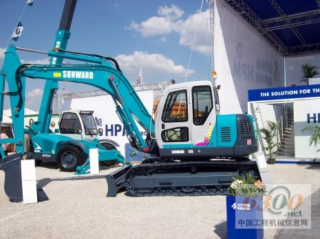 山河智能与其欧洲战略伙伴---HPM公司在室外展馆F9区开辟了近1000平米的展位,SWL系列滑移式装载机,以及山河智能最新开发的伸缩臂叉装车、挖装机等四大类20余种机型。其中小型液压挖掘机,从SWE08迷你小型挖掘机到SWE125全系列登场,包括SWE08,SWE15,SWE17,SWE28,SWE38,SWE55,SWE60,SWE70,SWE78LS,SWE90,SWE125等十几种机型,其系列化之全,堪称中国小型工程机械之首。