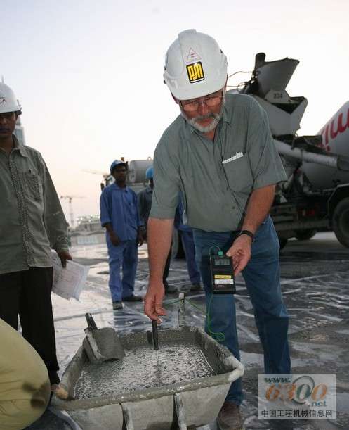 多重检查确保混凝土的质量 在混凝土搅拌厂中每一批混凝土的生产都接受监控并做有记录。在混凝土运泵送前,会定期检查混凝土的温度和流动性,并制作试块检查混凝土强度。此外,现场的管理方会为确定混凝土凝固和收缩指标进行取芯。每次泵送时每根输送管中都泵送有2立方米的泵送辅助剂,辅助剂是在大厦的上的一个容器中收集的,然后用塔吊吊到地面上。