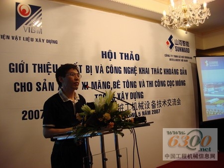 同时,在5月10日,为促进越南本地施工技术的发展,展示湖南工程机械的品牌形象,由越南水泥建筑工业设计院主办,山河智能公司承办的“2007中越水泥矿山与桩工机械设备技术交流会”在胡志明市Kidom酒店隆重举行,来自越南工业部、商务部、越南工程机械协会、越南施工企业协会等领导专家,以及中国国内部分大型施工企业在越南的机构的相关人员等50余人出席了本次会议。会议由山河智能公司董事龚进主持,中越友好协会会长裴洪福先生、越南工程机械行业领导、以及湖南省商务厅领导等先后代表发言。大会进行了山河智能ZYJ系列静力压桩机与SWD系列潜孔钻机产品的技术交流,观看了山河智能静力压桩机与潜孔钻机的施工工艺专题片,代表们对山河智能公司自主创新研发生产的“潜孔钻机”与“静力压桩机”产生了浓厚的兴趣,也对我公司举办本次会议、促进当地施工技术发展给予了高度的评价。会后还参观了山河智能的展位,并且前往工地,参观了山河智能产品的现场施工。