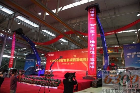 2011年8月19日,山重建机有限公司分别在济宁、临沂隆重举行两万台挖掘机项目落成典礼。中国工程机械协会秘书长苏子孟,中国工程机械协会挖掘机分会秘书长李宏宝,中共济宁市委副书记、市长梅永红,济宁市副市长周洪,济宁市副市长、高新区党工委书记佘春明等济宁市领导。中共临沂市委常委、副市长刘晓,临沂市人大常委会党组副书记、副主任于中华,临沂市政协副主席杨荣三,临沂市经济开发区党工委书记、管委会主任徐福田等临沂市领导。川崎重工业株式会社精密机械公司执行役员日高博,康明斯中马力、重马力全球副总裁刘晓星等海外65家供应商,200多家国内供应商,杭州常林工程机械有限公司董事长曹卫国,河南远程机械设备有限公司总经理李辉等100多家代理商。山东重工集团监事会主席翟凤银,山东重工集团总经理、山重建机有限公司董事长江奎,山东重工集团工程机械战略总监颜开荣,以及山东重工集团各子公司潍柴控股集团有限公司、山推工程机械股份有限公司、山重融资租赁有限公司、山推机械有限公司、山东省汽车工业集团公司主要负责人。山东电视台、大众日报、大众网、中国企业报、中国工业报、工程机械商贸网等30多家新闻媒体出席了落成典礼。山东重工集团副董事长、山重建机有限公司董事董平主持了典礼。