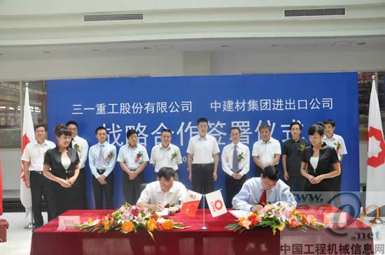 近日,三一重工副总裁北京市三一重机总经理伏卫忠与中建材集团进出口公司副总经理中建材国际贸易总经理张劲松共同签署战略协议,合作双方表示,作为各自专业领域的龙头企业,彼此拥有无法替代的个体优势,双方携手实现强强联合、优势互补、资源共享,为民族企业开拓国际市场提供了有力的支持。