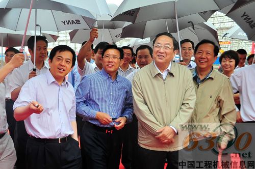 尽管细雨蒙蒙,但领导们兴致不减。三一重工董事长梁稳根、总裁向文波向俞正声汇报了三一上海产业中心的建设情况及未来三一在上海的发展规划。俞正声对项目的建设及企业的发展规划给予了高度认可,并对三一参与日本福岛核电站的救援行为表示赞赏。