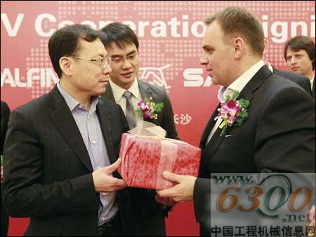 帕尔菲格监事会副主席Hubert-Palfinger-Jr.向三一集团总裁唐修国赠送礼物