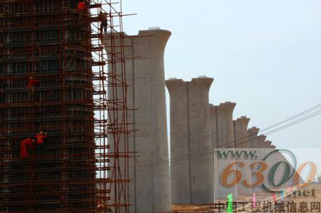 该桥于2010年5月正式开工建设,并于当年下半年进入施工高潮期,一直持续到2011年年初。随后由于受国家宏观调控政策的影响以及超高压线路迁改、房屋拆迁、道路改移等因素制约,施工进度有所放缓。今年春节过后,情况略有好转,但一些制约因素短期内不易排除。为了早日完成既定的施工任务,建设者们发扬蚂蚁啃骨头的精神,针对存在的矛盾和问题,采取多项项措施逐一进行攻坚,能调整施工方案的调整方案,不能调整方案的加大协调力度,争取相关部门支持。目前,剩余的几十根桩基、十多个承台墩身的施工正随着障碍的逐一排除不断向前推进。