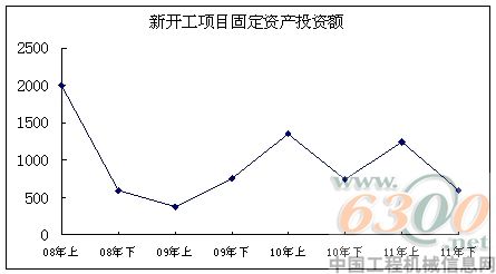 据中国冶金建设协会统计,2011年下半年以来,行业新开工项目固定资产投资额大幅下降,下半年新开工项目197个、投资额591.5亿元,比上半年分别下降36.7%和52.2%,仅略高于国际金融危机爆发后2009年上半年的水平,企业新建项目热情大减,许多已完成规划和设计的项目暂缓建设,投资日趋理性。下图为2008年以来各时间段新开工项目固定资产投资情况(以半年作为一个统计周期,下同)。