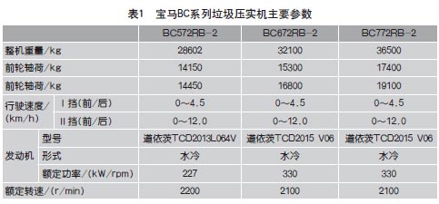 表1 宝马BC系列垃圾压实机主要参数