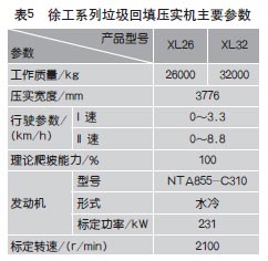 徐工XL26垃圾回填压实机是一种具有较大单位线载荷的重型压实设备。表5所示。