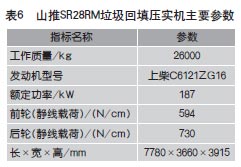山推SR28RM垃圾压实机主要参数