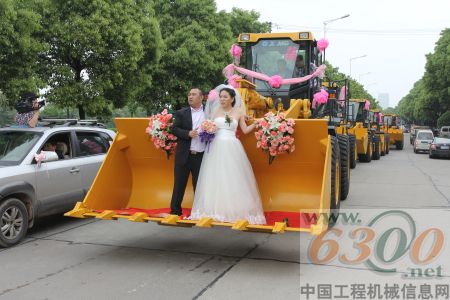 拥有一次浪漫的婚礼,是每一对新人共同的愿望。制造一场与众不同的浪漫婚礼,不但会让人眼前一亮,更会让人对这样的婚礼大家赞赏。怎样才能与众不同呢?2012年5月2日,徐工科技湘北代理商岳阳中伟工程机械有限公司总经理童志伟用装载机车队迎娶新娘,在长沙引起了不小的轰动,徐工装载机不仅成就了童志伟总经理的财富梦想,同时也见证了他人生中最美好的幸福时刻。