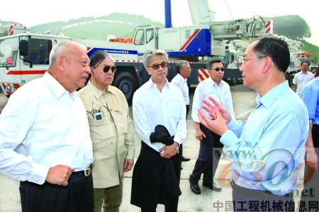 在参观过程中,中联重科董事长詹纯新向董建华先生及代表团讲解了混凝土机械、工程起重机、建筑起重机械等中联重科主打产品的性能特点,并就中联重科20年来的高速发展,特别是近年来企业加快全球化步伐,参与国际并购及产业全球布局等情况作了介绍。董建华先生表示,中联重科是一个成长很快的企业,目前国内经济正在腾飞,对各领域工程机械产品需求很大,但并不是行业内每一家企业都能做得这么好、发展这么快。当得知“西塔泵”可将高粘度混凝土泵送至400米以上时,董建华先生说,在香港,现在经常可以看到内地的工程机械与国际企业产品媲美,香港各界也一直看好中联重科。2010年,中联重科的H股上市,就让香港商界与政界了解到了中联重科的企业实力,当时募集资金总额达150亿港元,便是对中联重科实力强大、业绩靓丽的充分肯定。
