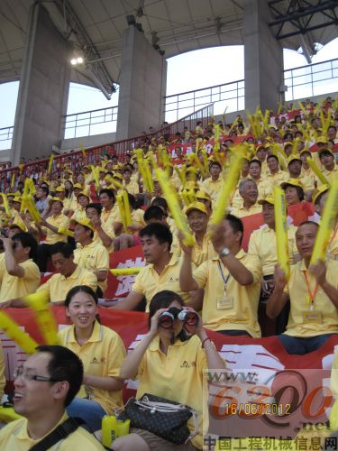 6月的郑州骄阳似火,比赛现场的情绪也不断高涨,两队精彩的对攻让现场球迷大饱眼福,鸣威加油声此起彼伏,临工客户身着的黄色T恤分外醒目,飘扬的临工旗帜、LED滚动播出的临工宣传片以及围板上的临工LOGO,无一不彰显出临工的实力和激情,虽然河南建业主场以0:2失利天津泰达,但这丝毫没有影响到客户的观赛热情,观众席中的客户跃跃欲试,整齐有力的呐喊口号一浪高过一浪,在场的每一位观众都见证了山东临工的实力和激情。