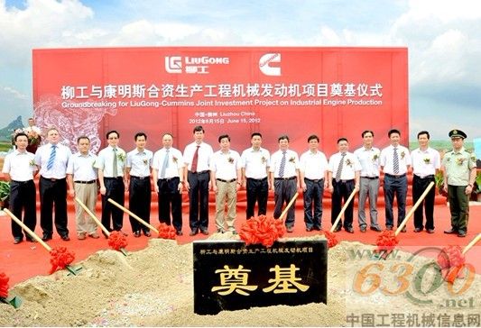 6月15日,柳工与康明斯公司合资成立的“广西康明斯工业动力有限公司”厂房奠基仪式在柳江县新兴工业园举行。广西壮族自治区工信委副主任李万富、自治区国资委副主任覃卫国、柳州市常委副市长刘传林、自治区农垦局副局长甘羽翔、柳江县县长覃建波、柳工集团公司总裁杨一川、柳工股份公司总裁曾光安、康明斯公司副总裁刘晓星等领导出席仪式并为新厂房奠基。合资双方的员工代表、供应商、承包商代表见证了这一重要时刻。