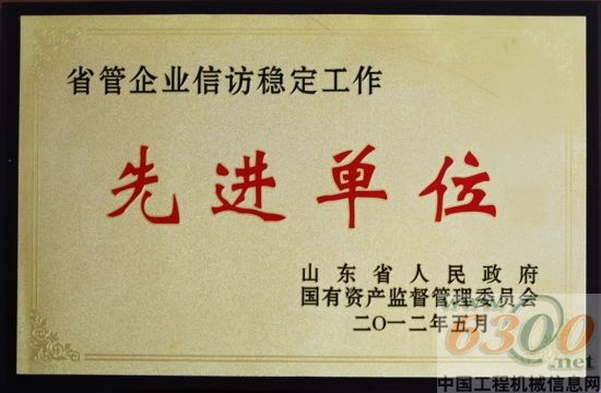 近日,在山东省国资委系统信访稳定工作会上,公司被省政府、省国资委评为“2011年度省国资委信访稳定工作先进单位”。
