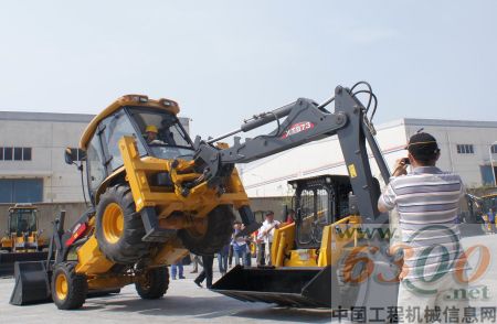 近日,马来西亚、印尼客商50余人分批来特机公司参观。客户主要参观了挖掘装载机、小型装载机、滑移装载机、伸缩臂叉装机产品,并对产品产生了浓厚的兴趣,纷纷询问技术人员与操作人员。同时,挖掘装载机和滑移装载机现场进行特技表演,只见挖掘装载机两头撑起,滑移装载机从容不迫的从挖掘装载机下面穿过,展示了徐工小型工程机械的稳定能,博得了在场外商的阵阵掌声,并拍照留念。