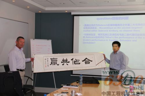 山东临工执行总裁于孟生指出:在临工目前的海外战略中,对以金砖五国为代表的新兴市场非常重视,也将其作为临工全球化策略的重要组成部分。目前,临工在俄罗斯、巴西、印度等区域市场都有了长足的进步,相对而言,南非市场属于后进入者,但现在我们非常高兴的看到合作代理商的临工业务板块的组织架构已经构建起来,并且业务起点较高,潜力巨大。山东临工将就如何进一步支持南部非洲市场的问题进行深入探讨,在渠道和品牌上给南非市场以最大程度的支持。同时,借鉴其他国家的客户群需求,逐步完善临工南非市场的产品格局,并完善配件流程,进行有针对性的改进后市场工作。