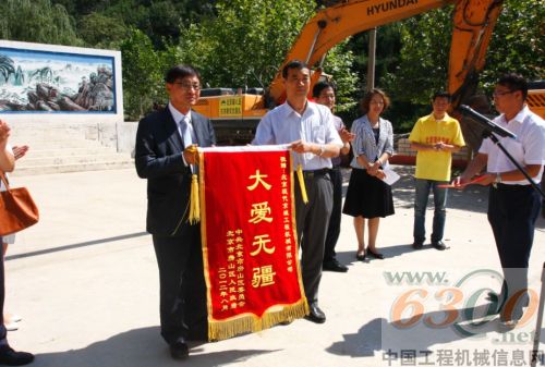 刘欣国副主任在讲话中强调:“我们7.21以来,房山区遭受了500年一遇,北京市遭受了60年一遇的特大洪涝灾害,仅张坊镇基础设施损失就达50多亿元。在关键时刻,北京现代京城工程机械有限公司毅然决然让自己有限的设备和人员投入到张坊镇一带,他们这种大爱无疆为北京精神做了最好的注脚。一个月的时间里面,北京现代京城的志愿者们,顶烈日、冒酷暑、不能回家,挥洒了无数汗水,使张坊镇内十多里的河道从千疮百孔变得干净平整。我们将把他们的这种大爱融入到自己的实际,将更加努力地把我们的家园建设好。”