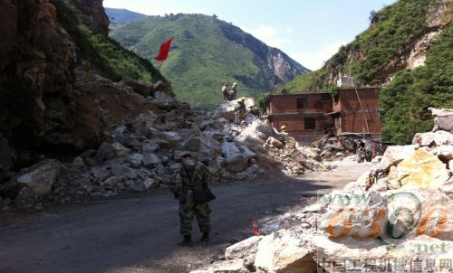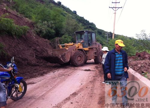 14日9时30分洛河镇3公里处:柳工机械正在疏通余震造成的山体塌方