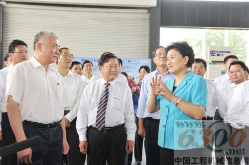 在公司文化展厅,董事长王晓华向刘延东介绍了公司发展历史,并着重汇报了近十年来公司在自主创新、扩张并购、国际化发展等方面取得的成就。刘延东仔细听取了公司发展情况汇报,详细了解了我公司在科研和产品市场方面的开发情况,为企业的科研水平和发展业绩感到高兴。她说:“柳工在行业知名度很高,54年的国企老厂不断焕发出新的活力,在国家工程机械行业发展方面发挥了‘龙头’作用,尤其是柳工作为一个西部企业,到东部发达地区收购企业,很不简单!”