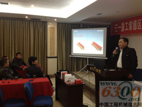 接着,湖南三一副总经理邹永进先生针对安全操作知识培训进行了演讲。他通过放映操作视频,PPT动画,文档等动静结合的方式,生动活泼的讲解方式调动起了现场嘉宾学习的兴趣,大家看的非常认真,没有一个人交头接耳,会场里只听到邹永进先生认真的讲解声。