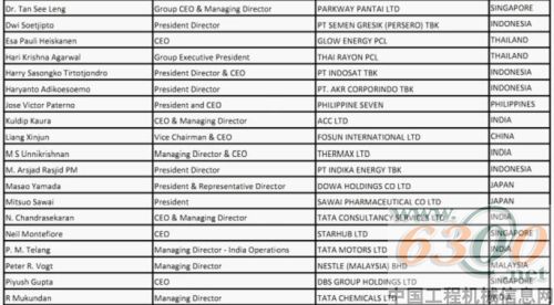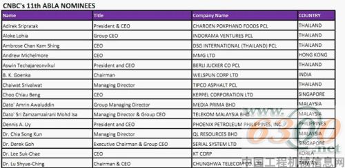 下图为“亚洲最佳商业领袖奖”提名的企业和人员名单: