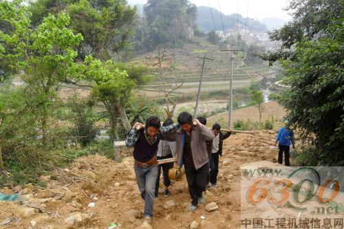 车在坑坑洼洼、蜿蜒曲折的乡村路上前行,两个多小时过去了,车只要再穿过一个村就能到达目的地了,眼看就快到工地了,没有想到路上却因山体滑坡阻断了去路,仅留下一人过的狭小空间通过。“老天给我们开的玩笑也太大了些吧”,晏主管抹了抹脸上的汗调侃的说道。怎么办?客户还在等着,但又走不了了,不及时处理好客户的机器,不仅让客户蒙受损失,也影响了玉柴重工的声誉,就在这时,晏主管当机立断决定,就算抬也要把油缸抬到客户面前,无论如何都要把客户的机器修好。于是,他们就请了几位当地村民帮忙一起将油缸从车上卸下,一点点从巨石的旁边小心的挪过,然后大家吆喝着抬起来迈着沉重的步伐,继续往前走去……