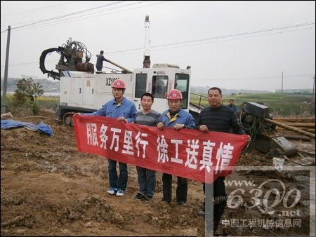 施工现场,一台XZ1000水平定向钻机正在紧张的运作中,而承包这个项目的刘总正密切关注着机器的运转。这是公司生产的第一台型号为XZ1000的定向钻,2009年出厂一直工作到现在。经过询问,队员们得知这台定向钻除了动力头推拉高速存在问题外,其它一切工作正常。苗队长经过排查,找出了问题的所在——PVG阀有问题。问题解决后,小分队又与刘总和机手交流,询问以前的故障问题以及有什么改进建议,同时告知他们保养方法。刘总真诚地表示,之所以选择徐工产品,就是因为徐工品牌好,事实证明,徐工不仅产品质量好,服务更好。