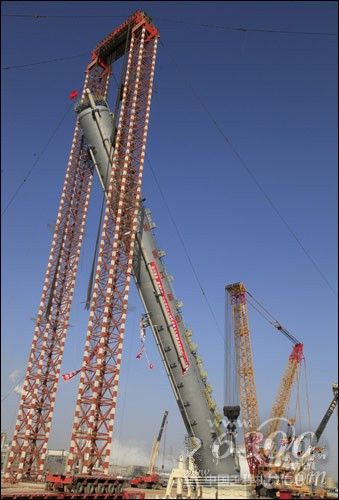 而XGC28000最近一次“大动作”,发生在2012年12月19日宁夏宁东能源化工基地中石化十建50万吨/年甲醇制烯烃项目中,需将总高100.9米,筒体内径8米,总重量约2300吨的C3分离塔安装到位。