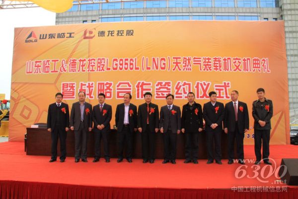3月29日,山东临工与德龙控股35台LG956L(LNG)天然气装载机交机典礼暨战略合作签约仪式在山东临工广场隆重举行。山东临工工程机械有限公司总经理文德刚、副总经理姚金军、德龙钢铁有限公司副总经理靳旭冉等领导参加了战略合作签约仪式。