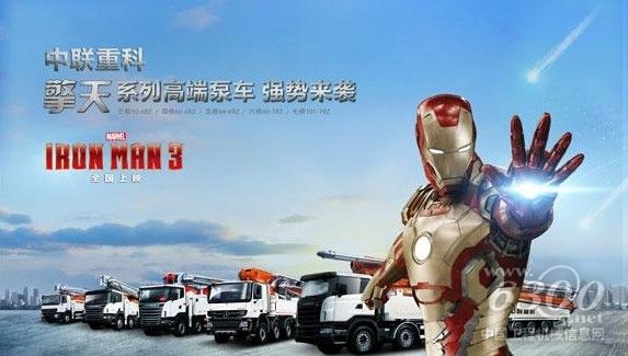 配合《钢铁侠3》中联重科推出擎天系列高端泵车