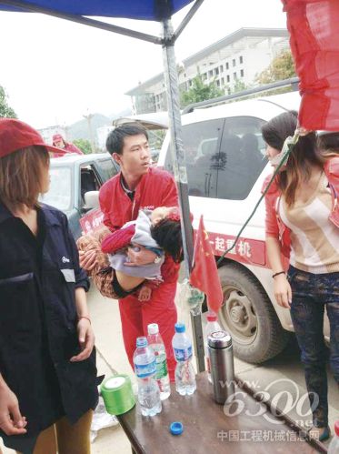 三一救援队员抱起受伤的小女孩