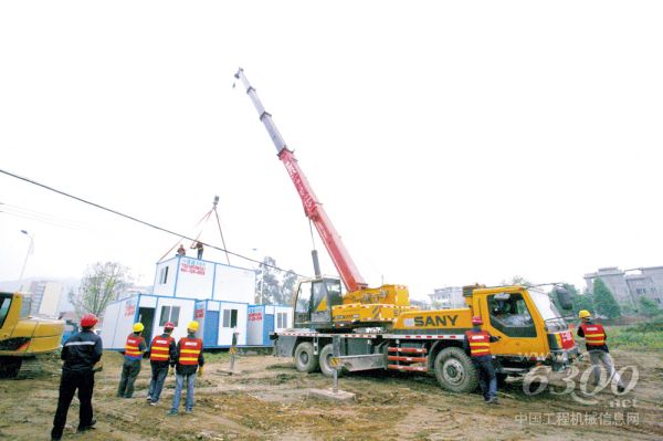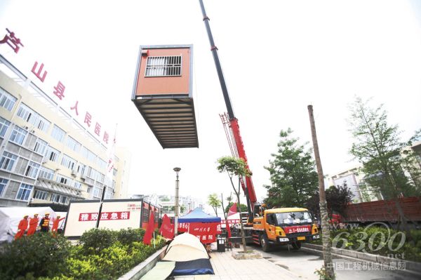 三一汽车起重机为芦山县人民医院吊装应急集装箱