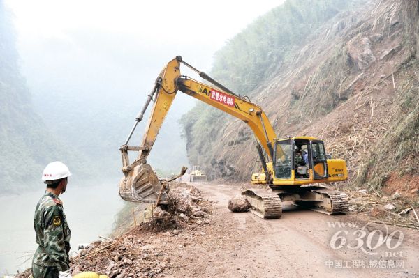 三一挖掘机抢通从芦山通往宝兴的救援通道