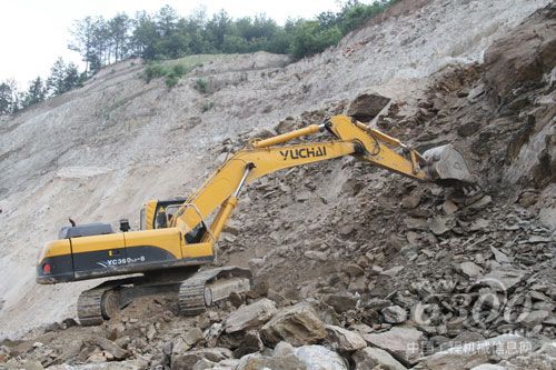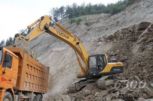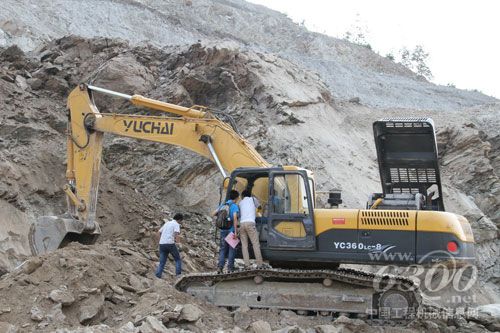 “这里整个区域类似这样的工程也很多,这些石头山都是简单破碎后用大挖机挖、装车,力气小的机器根本做不动,而且这台机在整个工地上比任何一台同吨位的机子省油,装车也稍快一筹”,玉柴重工研究院工作人员、玉柴重工服务工程师等在工地为王总的YC360做检测时,负责工地监工的刘师傅与机手在旁讨论。