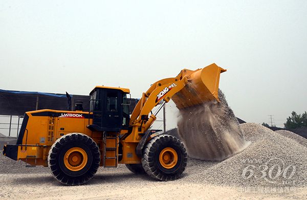 在某厂拌站工地,一台徐工LW800K大吨位装载机在砂石堆和厂拌机之间来回穿梭,一斗一斗的将沙石料装进厂拌站,显示徐工大吨位装载机舍我其谁、力拔山兮气盖世的气势。客户说,徐工LW800K装载机铲斗大,装料的效率特别高。机子结实耐用,每天工作时间都在10小时左右,自打用了之后几乎没出过故障,对我们产品的服务也很及时,最主要的是省油,它就是我们厂拌站的明星。