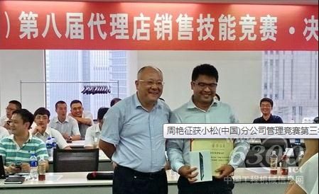 2013年8月9日,小松(中国)第八届全国代理店销售技能大赛决赛在上海恒生大厦17楼举行,此次大赛分《销售模拟谈判》《分公司管理》《债权管理》三个项目,参赛选手是各项目在各区预赛获得第一名的人员,我司周艳征同志代表小松华南和福建小松参加分公司管理项目,以《求生存-分公司创收改革》的精彩演讲获得评委认可,在激烈竞争中取得分公司管理竞赛项目全国第三名的成绩。