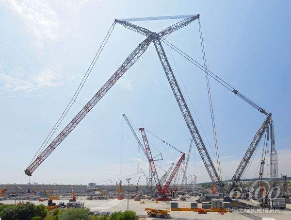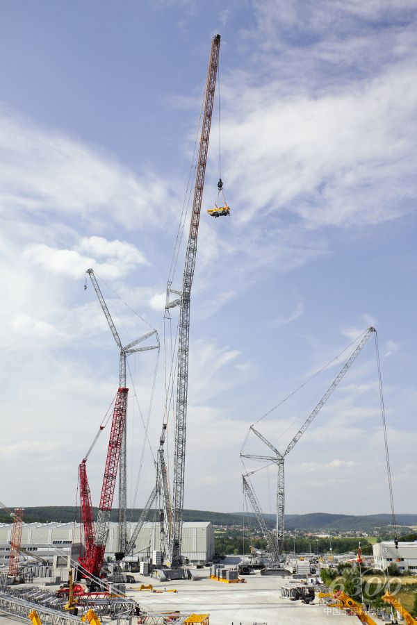 如今,LR 13000已不仅是最强大的传统式履带吊,它也是全球最高的履带吊。七月,德国爱茵根工厂全工况安装LR 13000。长120米的主臂和长126米的副臂构成总长246米的桁架臂系统。将该桁架臂系统安装在坚实的履带式底盘上,起重机总高度达到248米。