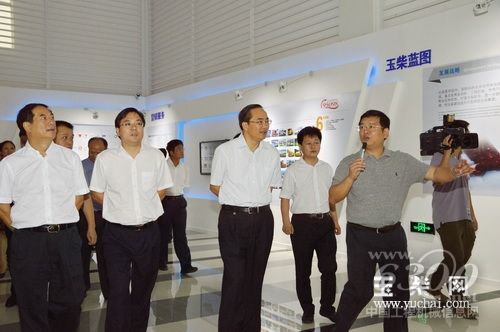 吴其伟向余远辉一行汇报了目前玉柴的发展规模、研发技术、生产制造能力等情况。