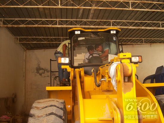 该日下午,CARE团队继续拜访Biskra当地一个装载机用户。客户带着CARE团队围着装载机转了一圈,并且提出了很多建设性的改进意见,如:电源继电器改进,方便操作性等。厦工装载机技师庄斌当场为客户检修了XG958电源继电器、转向灯手柄开关的故障问题。