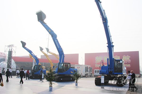 山重建机6台挖掘机盛装参会,总经理夏禹武参加了此次发布会,并与参与领导和嘉宾进行了友好的交流。