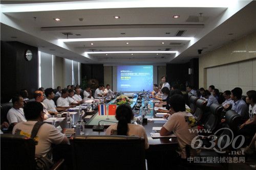 随后,来自泰国的近四十位客户及中联工起公司领导、技术部工程师共同出席了泰国客户代表座谈会。座谈会上,工程起重机公司副总经理徐遥致欢迎词。她首先代表公司对远道而来的泰国客户表示热烈的欢迎。同时她还详细介绍了中联工起公司的发展历史,并对工起四大明星产品(ZCC3200NP、QAY2000、RT100、QY220)作了详细介绍。她还表示,国务院总理李克强刚刚访问泰国,中国与泰国将有巨大的合作机会,并表达希望中联能与现场客户一道共同开拓泰国市场的愿望。中联工起将能够为客户提供技术过硬、服务过硬的产品及保障。中联工起期待与客户共同成长,携手共赢!产品经理就中联工起针对泰国型谱及产品分别进行了详细介绍。服务中心服务经理则就中联工起针对东南亚市场制定的服务体系做了细致讲解。当天下午,泰国客户一行还参观了中联重科麓谷工业园、中联重科工程机械馆等。