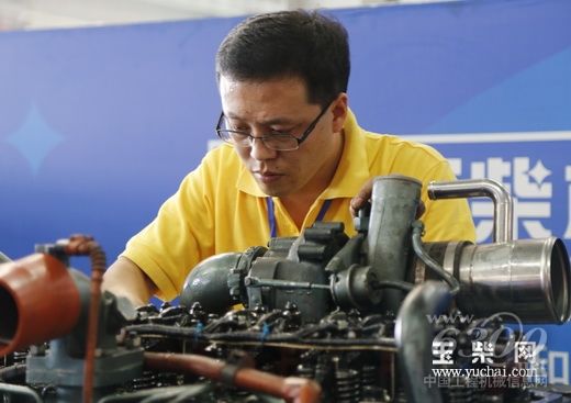 当天上午,经过激烈的初赛和决赛答辩环节,玉柴2013年服务技能大赛正式进入决赛实践环节,20名参赛选手被分成2组,进行激烈角逐。决赛实践比赛以“某用户一台国四发动机出现怠速不稳,异响、动力不足的故障现象,服务站人员前往排除故障,并确认发动机后处理正常工作”为故障背景,主要考察参赛选手对内燃机原理、常见故障诊断判断、鉴定,BOSCH高压共轨系统原理、故障诊断与故障排除,后处理系统原理、故障诊断与故障排除,国四发动机综合性故障诊断排除等知识。