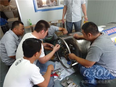 雷沃装载机服务服务人员们在研究车辆部件