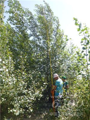 工作人员在测量树木的生长情况 导入坚固的混凝土桩子, 减少栏栅的损坏