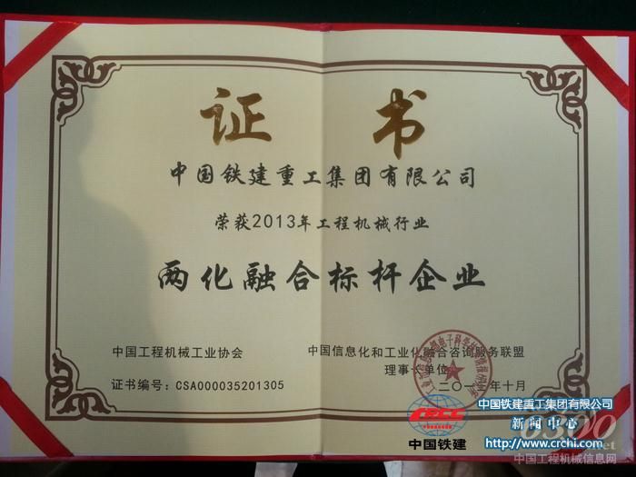 近日,工信部在北京召开"两化深度融合专项行动计划重点工作推进"大会。集团公司被邀请参加,并被授予"中国工程机械行业协会评为2013年工程机械行业两化融合标杆企业"。据悉,整个工程机械行业只有八家企业入围两化融合标杆企业,这也是集团公司继2012年被评为"国家级两化深度融合示范企业"后的又一殊荣。