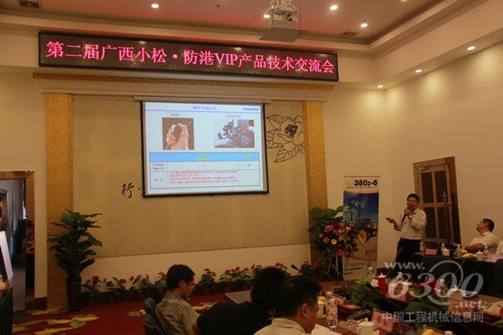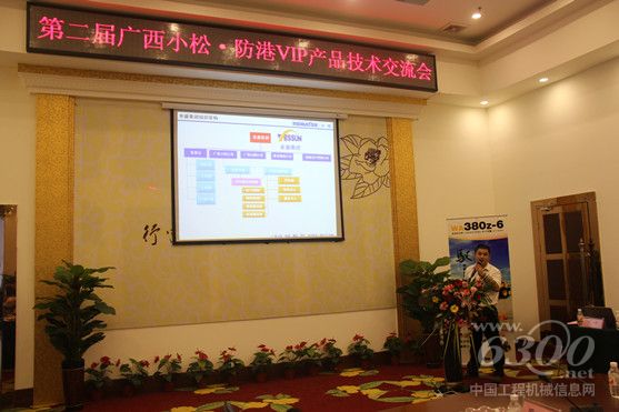 交流会在愉快的氛围中进行着。会上,广西小松杨林彬副总经理为大家详细讲解了广西小松的发展历程及大事记。