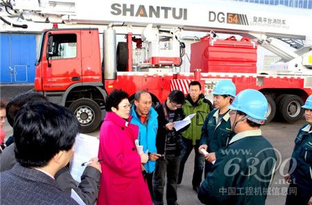近日,抚顺市科技局局长金亚兰、市财政局副局长杨丽波一行7人到山推抚起公司,就登高平台消防车DG54科技项目立项开展调研工作,抚起公司总经理周方翔陪同参观公司车间现场。
