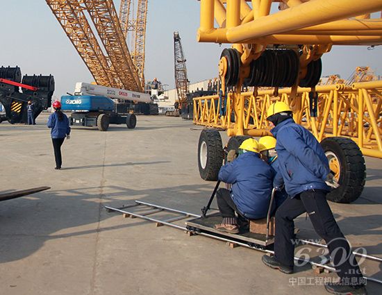 摄制组在智能化装载机基地连续四天紧张顺利拍摄后,顾不上休息就来到徐工大黄山起重机新基地拍摄大吨位起重机调试。预报说天气将有变化,而且大吨位起重机调试后,就要拆卸发往客户,所有工作要迅速完成。拍摄机会难得!戈导笑谈她曾听到过一句话“天佑徐工!”,那一天天气真的好给力。