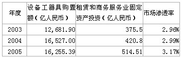 据《世界租赁年报》的统计数据显示:2004年全球租赁市场投资规模总额达到5791.3亿美元,亚洲租赁市场总量为852亿美元,年度增长率为7.1%,其中日本的年度总量为744.1亿美元,年度增长率为3.4%,市场渗透率为8.7%。租赁交易量占该国GDP的比例为1.73%,中国的年度总量为24亿美元,年度增长率为13.7%,市场渗透率为2.99%(见表1),租赁交易量占我国GDP的比例为0.17%。