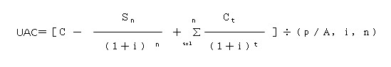 固定资产平均年成本,是指工程机械设备引起的现金流出的年平均值,上式是考虑了货币的时间价值,是未来设备使用年限内现金流出总现值,与年金现值系数的比值,表达了工程机械设备平均每年的现金流出。